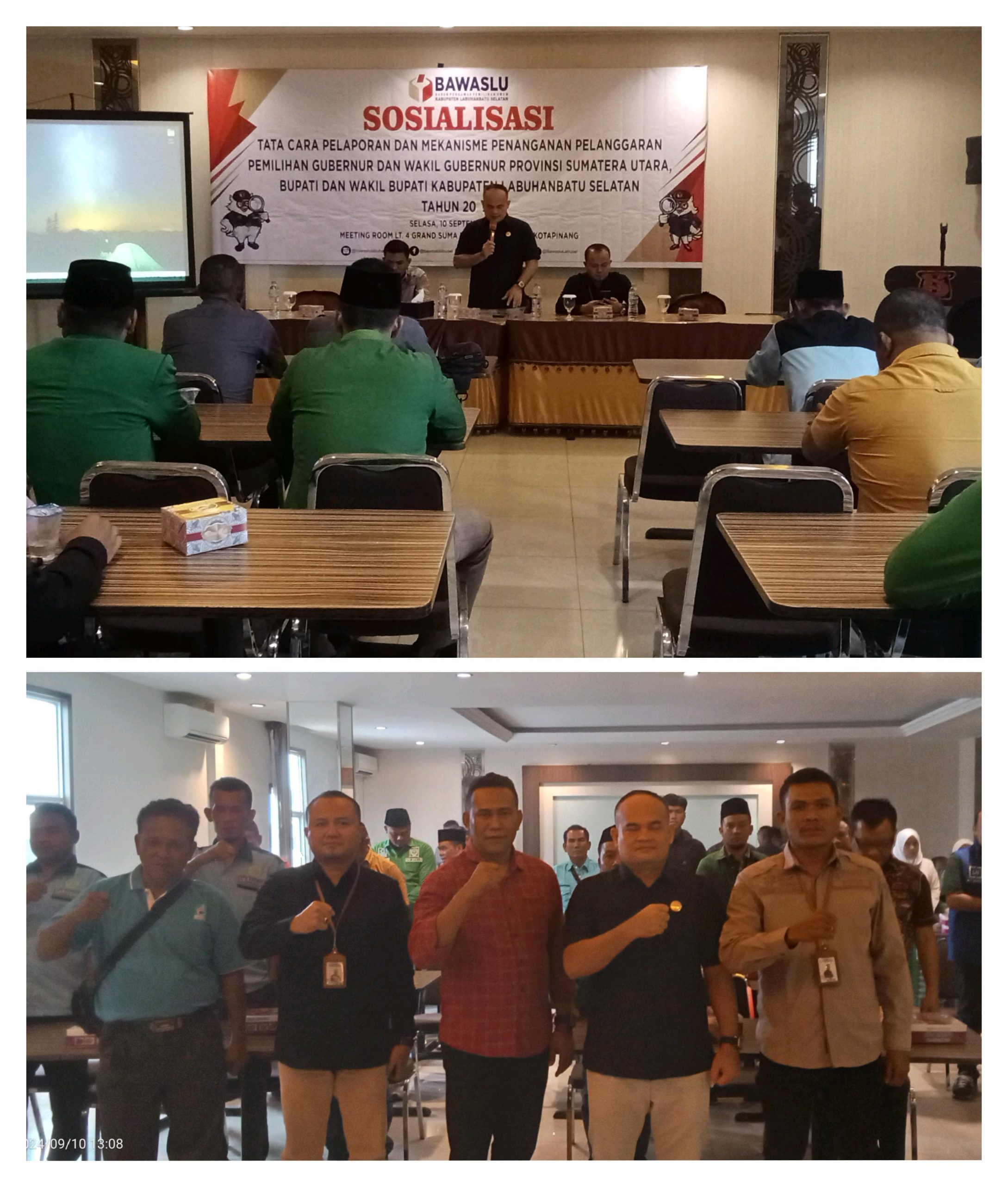 Badan Pengawas Pemilu (Bawaslu) Kabupaten Labuhanbatu Selatan menggelar acara Sosialisasi Tata Cara Pelaporan Dan Mekanisme Penanganan Pelanggaran Pada Pemilihan Gubernur dan Wakil Gubernur Sumatera Utara, Bupati Dan Wakil Bupati Labuhanbatu Selatan Tahun 2024 yang dilaksanakan di Ballroom Grand Suma Hotel Blok Songo Desa Sisumut Kecamatan Kotapinang Kabupaten Labuhanbatu Selatan, Selasa (10/9/2024).