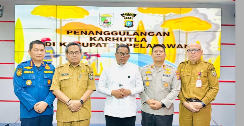 Bertempat di Comand Center lantai dasar Kantor Bupati, Senin ( 30/3/2026 ), Bupati Zukri didampingi Kapolres Pelalawan AKBP John Louis Letedara SIK, Sekda Pelalawan T. Zulfan, Kepala BPBD Zulfan M.Si, Kepala Dinas Damkar Indrawan Putra, menyampaikan apresiasi dan penghargaan yang setinggi-tingginya kepada seluruh tim gabungan yang terlibat dalam upaya penanggulangan Kebakaran Hutan dan Lahan (Karhutla) di wilayah Kabupaten Pelalawan.