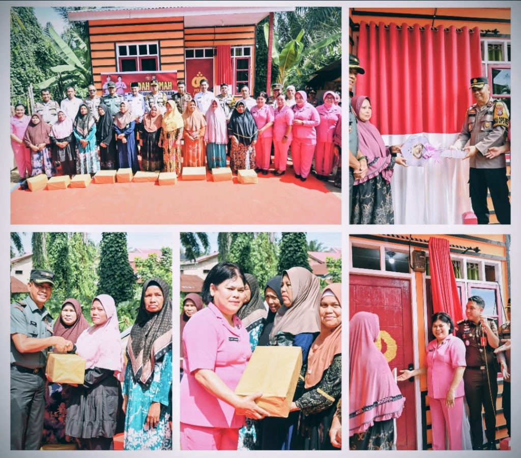 Selain penyerahan kunci rumah, acara juga diisi dengan pemberian bantuan sembako kepada warga kurang mampu di sekitar lokasi sebagai wujud kepedulian sosial Polres Labuhanbatu Selatan.