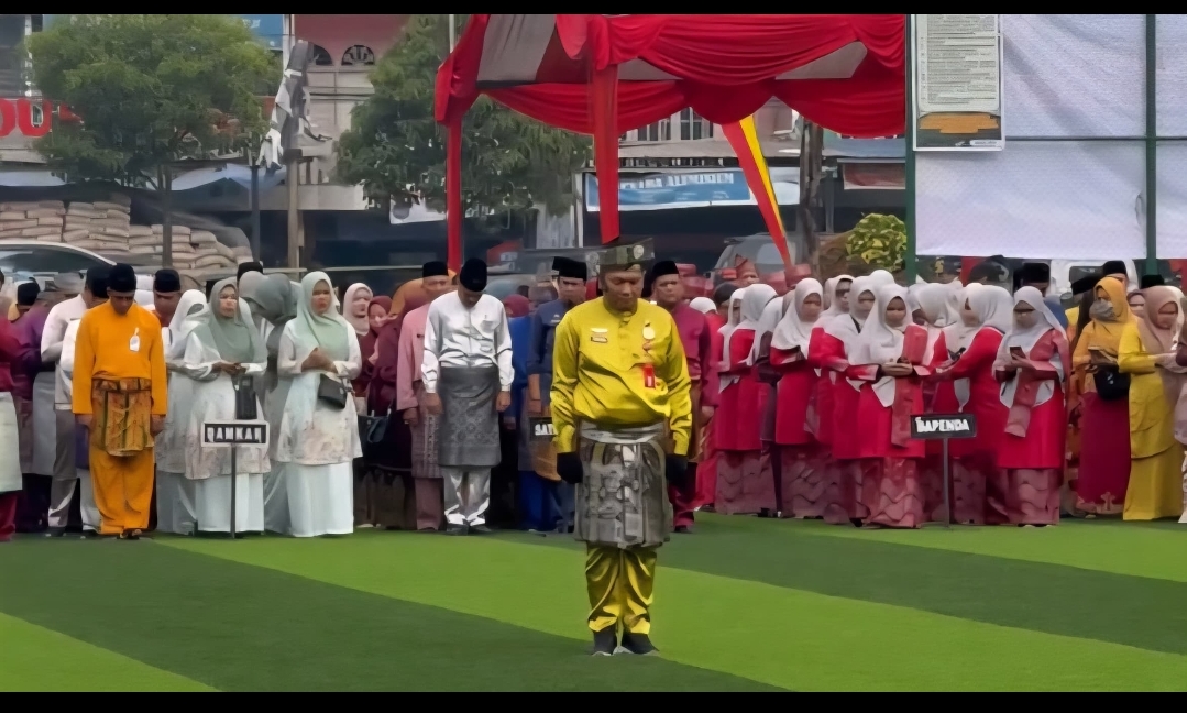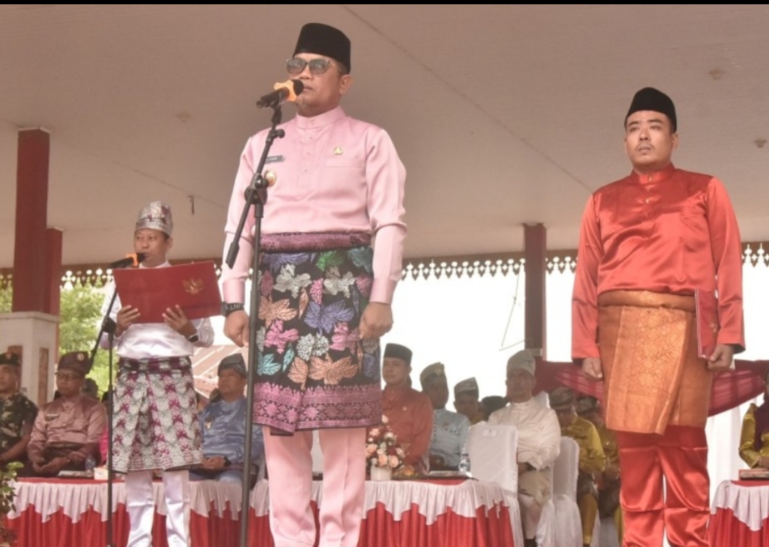 Pemeritah Kabupaten Pelalawan laksanakan upacara peringatan hari jadi Provinsi Riau ke 8 tahun yang bertempat di lapangan mini soccer Jalan Lintas Timur Pangkalan Kerinci, Sabtu (9/8/2025).