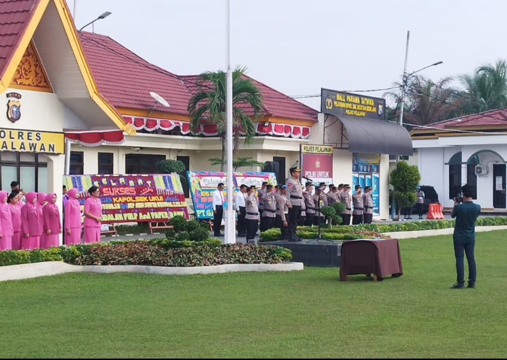 Perwira Upacara adalah Kabag SDM Polres Pelalawan KOMPOL HANDOKO SUJARYANTO, S.H., M.H, dan Komandan Upacara IPDA FERNANDO SILITONGA, S.H.