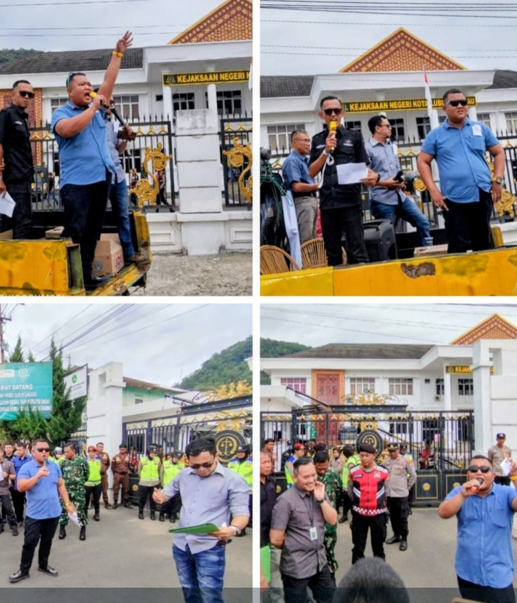Ratusan massa yang tergabung dalam Lembaga Swadaya Masyarakat (LSM) Penjara dan Masyarakat Anti Korupsi Melakukan Aksi Damai sekaligus menyampaikan Laporan dugaan Korupsi Pada Dinas Pendidikan dan Kebudyaan kr Kantor Kejaksaan Negeri Lubuklinggau .