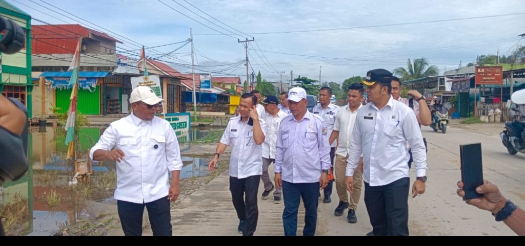Saat meninjau pembersihan drainase di Jalan Datuk Engku Raja Lela Putra, Kota Pangkalan Kerinci H. Zukri didampingi oleh Kepala Dinas Pekerjaan Umum dan Penataan Ruang (PUPR) Kabupaten Pelalawan.